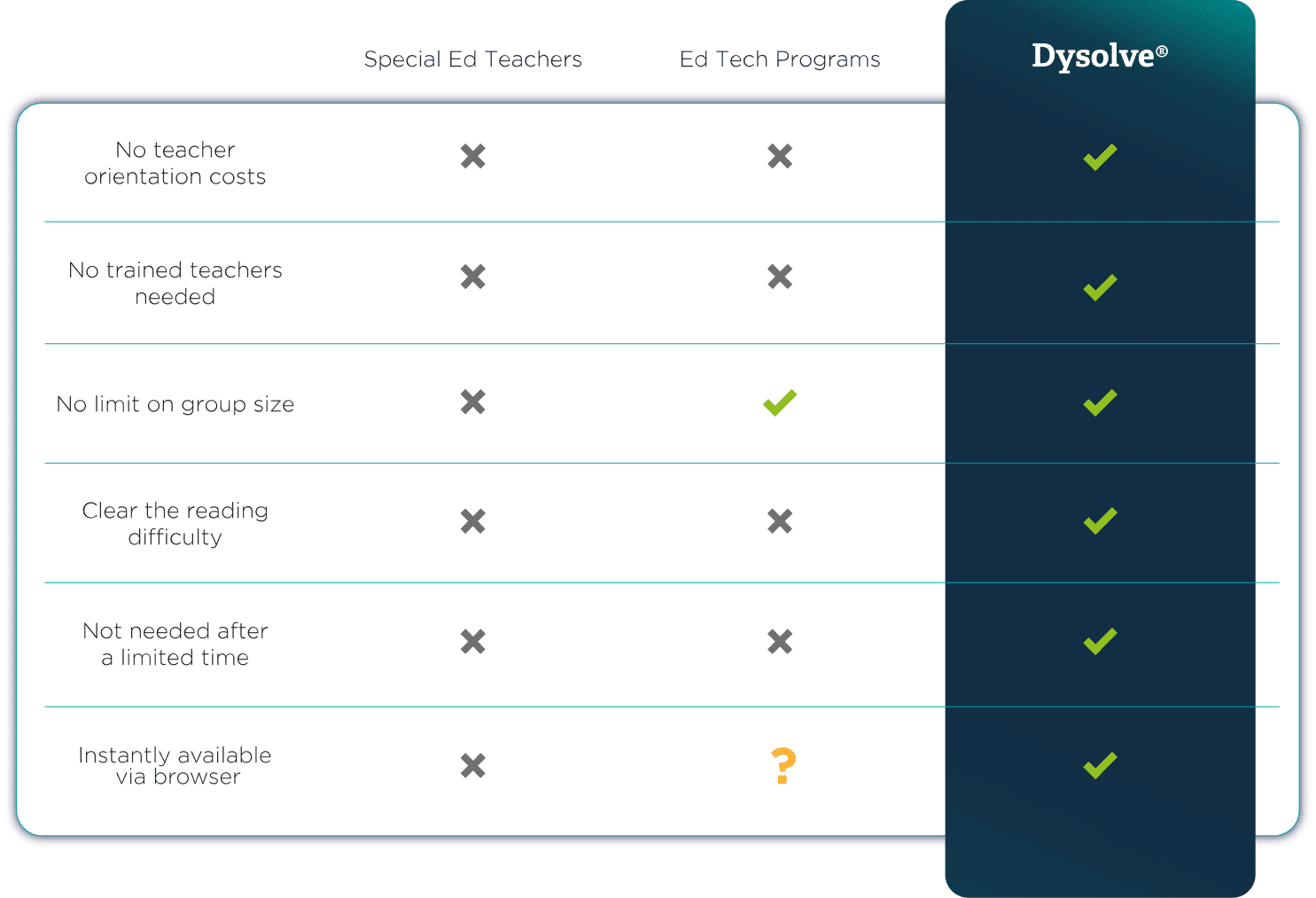 Dysolve AI® puts students back into general education, addressing dyslexia at its source rather than working around it.